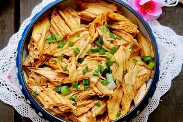 用料:豆筍(腐竹);鹽;生抽;老抽;辣椒粉;香菜/蔥花;香油