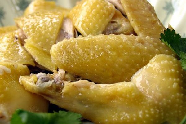 準備材料把土雞洗干凈后懸掛約兩小時以晾干水分(越干越好),然后把食用鹽均勻涂抹在整雞身上,接著在雞肚子里放入準備好的姜片,至少腌制半小時。