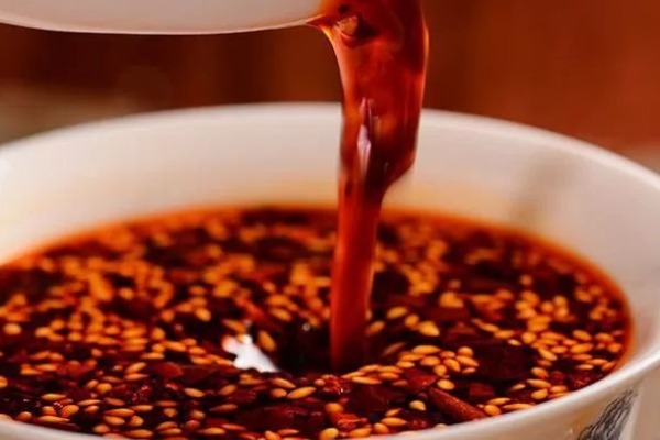 加水可浸出辣椒的紅色素,降低油溫,使辣椒油味濃。