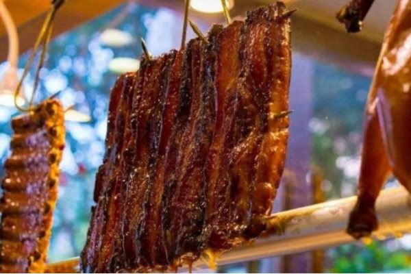 鹵菜店做叉燒,建議使用炭烤爐,就是用來做木炭烤鴨的爐子,把腌制好的叉燒用叉子勾好,放入烤爐中,這里有一個訣竅,叉燒入爐之前,炭必須已經燒透,不能火還沒有起就放入叉燒進去燜,這樣口感會大打折扣,想要出外酥里嫩的口感,就必須大火烤,時間最起碼要在25分鐘以上,拎出來過糖水,然后再放入爐中大火烤10分鐘,之后再取出淋糖水后,再放入爐烤10分鐘,前后需要淋3次糖水,這樣就能做出酥里嫩滋味十足的叉燒啦!