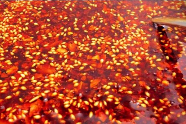 紅油制作中使用的油一定就是菜籽油,這樣做出來的紅油顏色比較好,而且菜籽油油溫比較好控制。很多人為了控制成本而用使用過的炸又來做紅油,這一點小編是不支持的,要想做好鹵菜有些成本不能省。