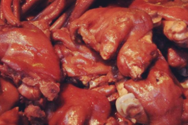 2、鹵肉原料碼味時,要加%0.05的硝鹽(一定要控制用量,不能超?。绱a時間一定要夠3小時,汆水必須將原料煮熟斷生,鹵制時間控制在要求時間之內,雞爪、雞翅、鴨掌等小型原料鹵制時間15分鐘之內,整雞、牛肉等控制在2小時之內,鹵菜時必須加蓋保持桶內鹵汁微微開,同時,鹵菜鹵好出鍋后必須用油刷刷1:1的香油和熟菜油,刷油的目的是阻滯空氣與食物的碘化反應速度,同時刷油后加封保鮮膜存放銷售。