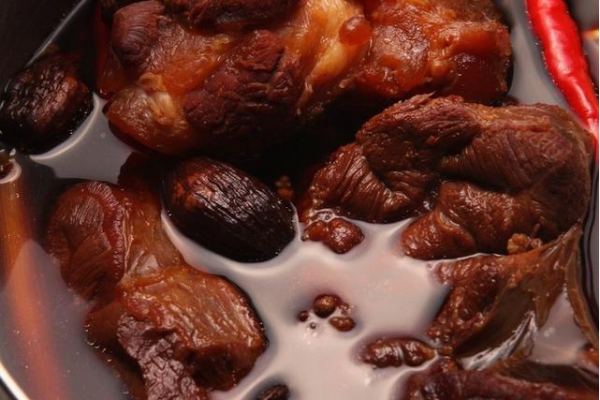 說到更快使肉成熟,就要提到鹵水的量,鹵肉時,盡量不要水多肉少,首先肉太少水太多是不容易使肉成熟的,水多肉少,還會讓肉味全部跑到鹵水里面;再者,如果一鍋鹵水的鹵料劑量只鹵兩塊肉,會讓單位體積的肉的藥味超標,當鹵料的香味都跑到鹵水里面了,就變成熬湯了,鹵肉里面的香味所剩無幾,反而藥味越來越重;第三、鹽分會超標,試想一下,一鍋十斤鹵水鹵8斤肉放110g鹽,和一鍋十斤鹵水鹵半斤肉放110g鹽,哪個更咸?