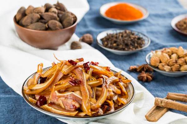 香辛料具有很強的調味功能,能很好地突出或者強化菜肴的風味。如桂皮主要含有桂皮醛、桂酸甲醇、丁香酚等,對菜肴的調味和矯正異味有很大的幫助,小茴香在是魚類烹調中常用的一種調味品,它具有調味和去腥膻味的作用。