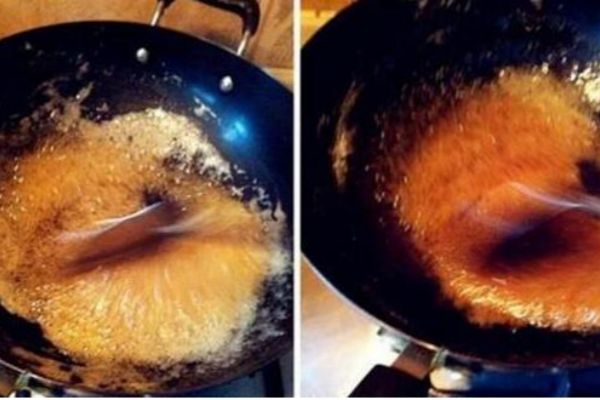 3、鍋具的選擇。我建議大家選擇比較厚的鐵鍋,這樣鍋受熱慢,導(dǎo)熱也均勻,小火慢慢炒,大家都能把糖色炒好。