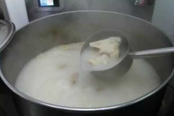 3、豬頭骨:豬頭骨的成本相對(duì)低廉,豬骨頭熬出來(lái)的湯呈奶白狀,但是熬出來(lái)的湯不夠香,處理不好還會(huì)有異味,所以要慎用,比例是25斤清水要用4.5斤豬頭骨