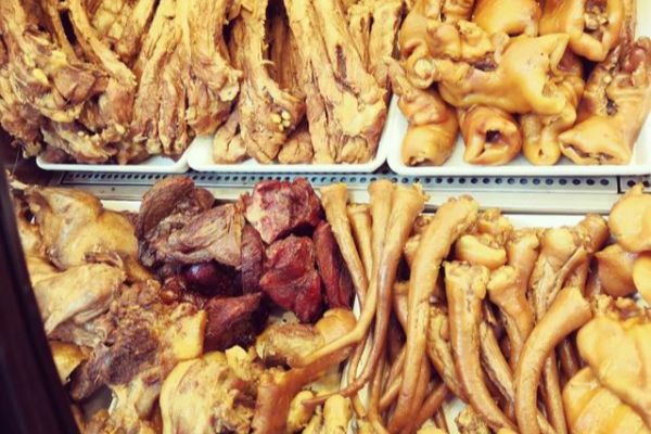 1、清洗處理。動物原料在宰殺處理后,必須將余毛污物清除干凈。腸肚應用精鹽、淀粉抓洗凈。舌、肚還應用沸水略燙,用刀刮去白膜。