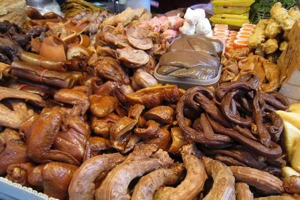 2.鹵制的葷菜比較常見的有:豬頭肉、豬耳朵、豬肝、豬心、豬尾巴、鹽水鴨、五香雞、烤鴨、鴨脖、鴨翅、鴨爪、豬大腸、雞翅、雞爪、豬舌頭、豬腳、五花肉、牛腱、五香牛肉,鹽水鵝,雞腿、牛筋等等。