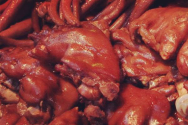 5.燒開后轉中小火鹵制30至60分鐘時間,具體時間為:牛肉需要60分鐘左右,雞爪,鴨掌等需要30分鐘左右,鴨頭,鴨脖等55分鐘左右,豬頭肉等需要30至45分鐘左右,豬蹄需要50分鐘左右。