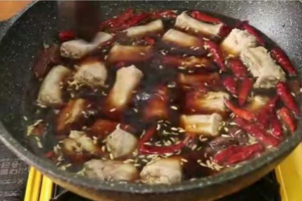 食材:鴨脖,雞架三只,干辣椒,花椒。
