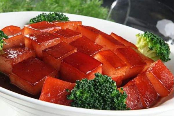 5.將準備就緒的五花肉放入湯鍋中,大火將其燒制沸騰,轉(zhuǎn)成小火燜煮4~~5個小時,直到五花肉熟透松爛將其撈出,晾涼即可食用。