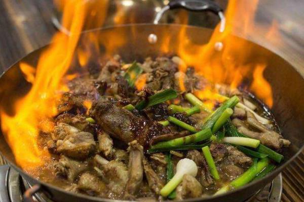 火焰醉鵝是近年來在廣東一帶非常流行的菜肴,也有很多這樣的單品店。火焰醉鵝從火焰魚改良而來,堂吃時(shí)氣氛很好。