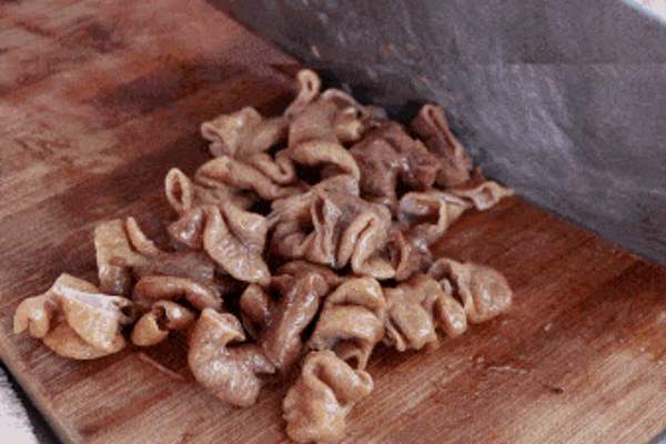 1. 豬大腸放在大盆中,撒入粗鹽3湯匙,以手翻動攪勻,隨手用力揉搓,至發出大量膠質,注入清水將其沖去,再撒粗鹽3湯匙入內,如前手揉搓,然后用清水沖透,臭味即完全清除;