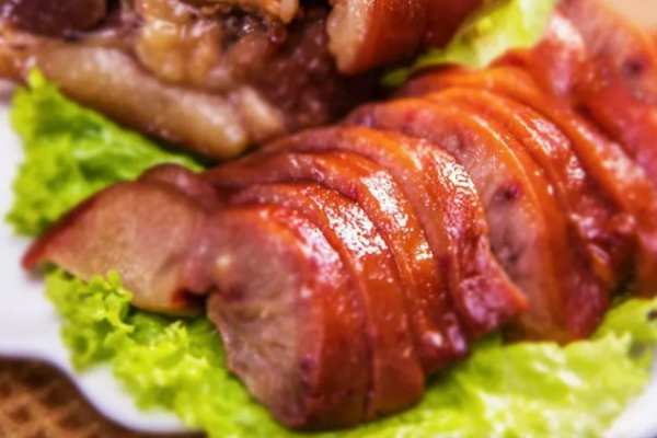 先將選好洗凈的豬頭肉坯,放置在燒開的老湯鍋內,旺火煮至七成熟取出脫骨,清掉煮湯中的沫子。再把豬骨頭鋪在鍋底,把煮好的肉碼在上面,加入調料和裝有新藥料的紗布袋,添足水,用旺火煮制1.5小時左右,然后用慢火煮制1小時左右,最后進行燜煮0.5小時