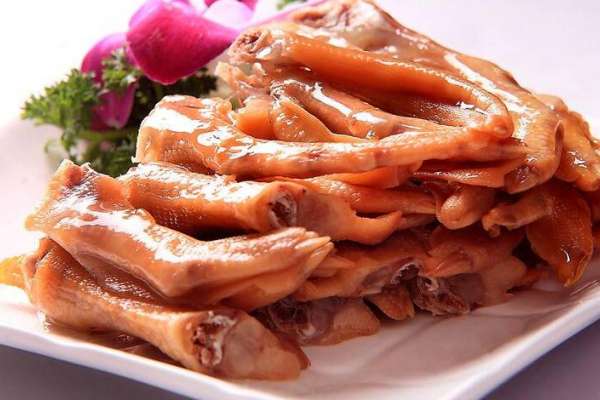 3.將煮熟的鴨掌浸泡在原鹵汁內(nèi)晾涼,食用時(shí)撈出,抹上芝麻油,碼盤上桌即可。