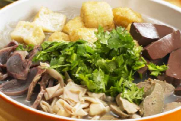鴨血(有時也用豬血代替),粉絲,油果子,蔥,姜,蝦米,香菜,鴨內臟(包括鴨胗、鴨腸、鴨肝等),精鹽,味精,雞精,香油(或辣油)各適量。