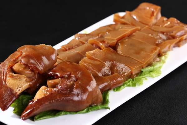 腌好的牛蹄放入高壓鍋內,加入炒香的用料壓制45分鐘左右。高壓處理的目的一是初步熟處理,二是讓調料的香味更好地滲透到牛蹄內部。