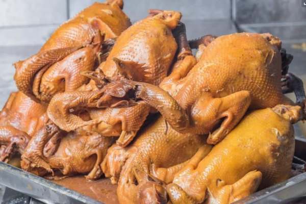 這種做法的特色是非常的有雞味,湯里滲透著藥材的香味和清淡的竹香,微呈著淡綠,真是色香味俱全。精華所在當然是肚腔里那些綿柔香黏的糯米了,很令人回味的!