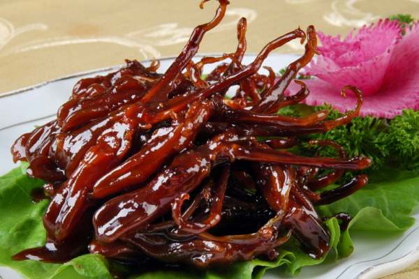 制作:將鴨舌泡入調料腌制2個小時,撈出將鴨舌風干,蒸熟即可。