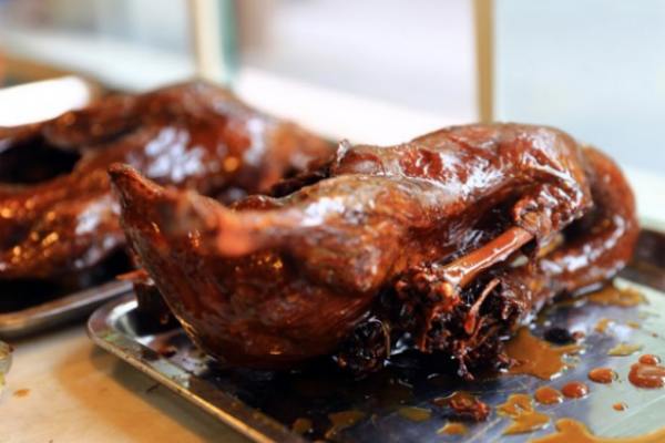 甜皮人稱“鹵鴨子”,是四川地區(qū)著名美食,沿用的是清朝御膳工藝。由民間發(fā)掘、改進(jìn),其鹵水別具特色,具有色澤棕紅、皮酥略甜、肉質(zhì)細(xì)嫩、香氣宜人的特點。