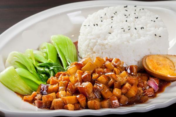 鹵肉飯是江南一帶的傳統名小吃,制作原料主要有豬五花肉、鵪鶉蛋、米飯等,肥而不膩、甜咸適口、香濃四溢。帶有厚重口感的鹵肉,配上一碗蒸的不軟不硬的白飯,每一粒米都吸透黑紅的湯汁。
