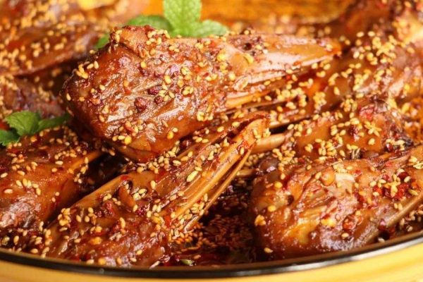 麻辣鹵鴨頭是一種以鴨頭為主料的菜品,源于清帝王乾隆食單。制作麻辣鹵鴨頭時(shí),最好選用上等的湖鴨,并將鴨頭提前用秘料腌制五小時(shí)以上入味。在鹵制過程中,還需要加入多種香料和調(diào)味料,如花椒、辣椒、香葉、草果、桂皮、八角等,慢火慢燉,使鴨頭充分吸收這些調(diào)料的香味。最終,這道菜具有香辣可口、麻辣適中、入口即化的特點(diǎn),而且還有開胃理氣、舒血而聞名的功效。今天小編和大家分享的是一款麻辣鹵鴨頭的做法及配料,可商用,建議收藏哦~