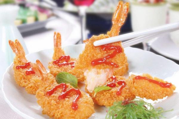 材料:蝦,面包糠,紅辣椒,雞蛋。