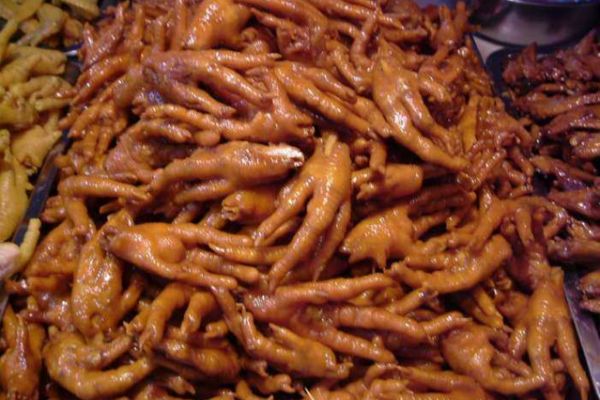 小件的(翅尖、翅根、雞爪、雞胗等)腌制:先用水清洗,加適量鹽進行腌制即可。冬天腌制8小時左右,春天腌制4小時左右,夏天腌制2小時左右。雞爪類要處理好清洗,腌制2小時,入150度油中炸制20秒,然后進行鹵制。
