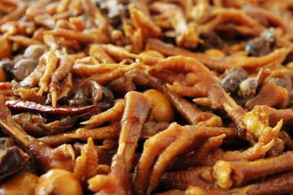 準備食材:雞爪,花椒,八角,小茴香,桂皮,老抽,白糖,姜,料酒,白酒,十三香,香葉,生抽