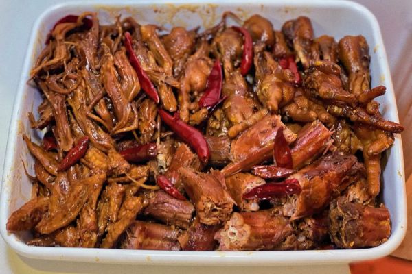 食材:雞爪、花椒、八角、桂皮、香葉、冰糖、料酒、老抽、生抽、十三香、姜。