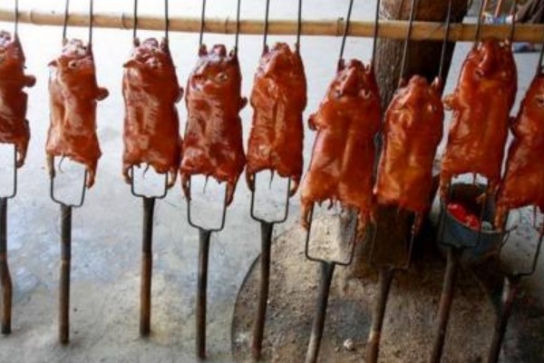 2.豬身烘干時,一般烘八成至九成熟即可,如批量制作必須烘至完全成熟,這樣可以加快爆皮上色的時間。