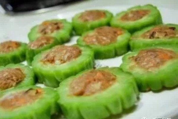 9、把肉餡放進苦瓜圈里。