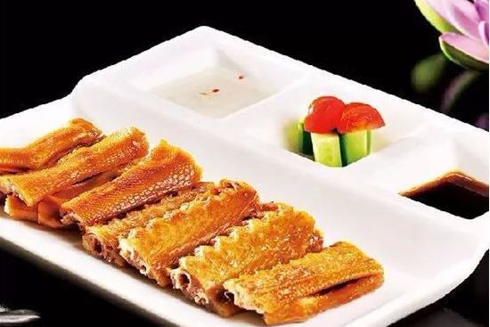 3、上色:取適量麥芽糖加少量水置于火上用小火煮開(kāi),加入適量日落黃,把顏色調(diào)成金黃色,然后用刷子在雞、鴨等表面均勻的刷上一層即可。肚、腸的鹵制:先清洗(鹽、堿、醋)不需腌制,出水后用清水與鹵水各一半兌成的鹵水進(jìn)行鹵制。蔬菜的鹵制:鹵水與清水的比例為1:3(取鹵水時(shí)用漏勺除去辣椒、花椒等雜質(zhì))。