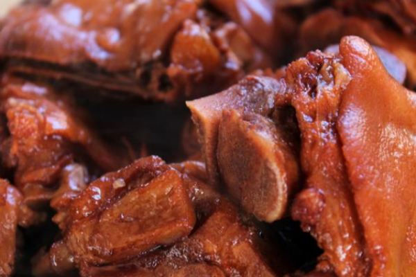 (1)由于豬的品種和新老不一,煮制的時間也應相應的調整,可能1~3h,以用叉子輕易將肉皮叉透為宜。