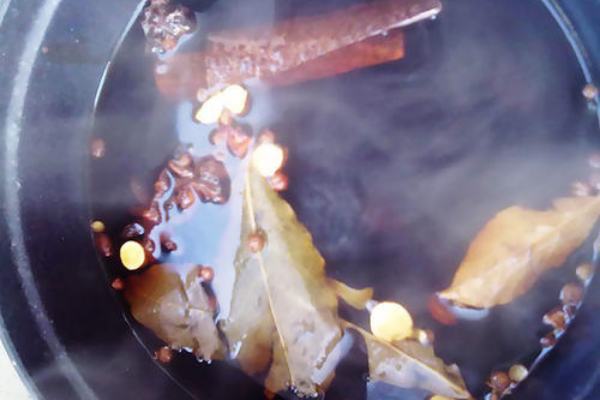 2、香料處理。新制作的鹵水有點點輕微的藥味屬于正常的。但是藥味和苦味過重就不正常了。這是因為香料前期的處理不當造成的。首先在香料下鍋之前,我們要用熱水將香料泡半小時,然后再用清水清洗兩三次,洗掉香料的異味和雜質,然后將香料放進老湯里,熬制1小時左右,熬出香味即可。
