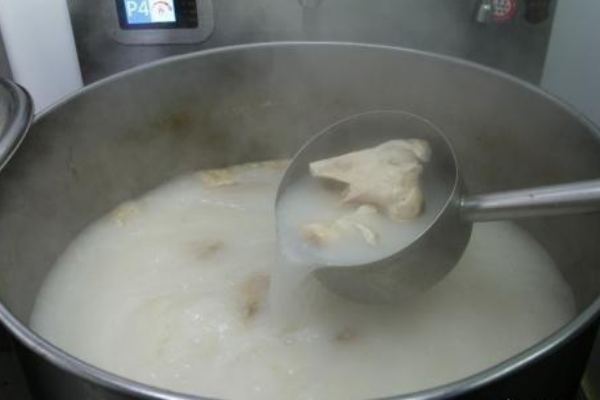 1、老母雞/雞骨架—— 加入老母雞目的是使高湯的味道更鮮香,為什么是老母雞而不是小公雞,是因?yàn)槔夏鸽u是經(jīng)過長(zhǎng)時(shí)間的養(yǎng)殖味道比其它的雞味道更濃郁,而雞骨架也是起到鮮香的作用但是加入的量相對(duì)要比老母雞要多,但是老母雞成本高,而雞骨架便宜,比例是老母雞一個(gè)或雞骨架5個(gè)2、 老鴨/鴨骨架—— 老鴨主要起到的就是增香的作用,老鴨成本也是比較高,鴨骨架便宜但是加的量要多,比例是加入老鴨半個(gè)或鴨骨架3個(gè)