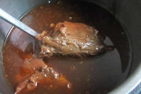 原料:八角20克,桂皮20克,陳皮50克,丁香8克,山奈20克,花椒20克,茴香15克,香葉20克,良姜20克,草果5個,甘草15克,干紅辣椒100克,香蔥150克,生姜150克,片糖250克,黃酒1000克,優質醬油500克,糖色50克,精鹽200克,熱花生油250克,味精100克,骨湯12千克。