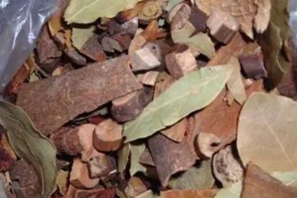 山奈4克,八角30克,桂皮20克,小茴15克,草果20克,丁香10克,甘草25克,花椒25克,砂仁頭15克,草豆蔻10克,老姜15克,紹酒300克,精鹽適量,冰糖300克,