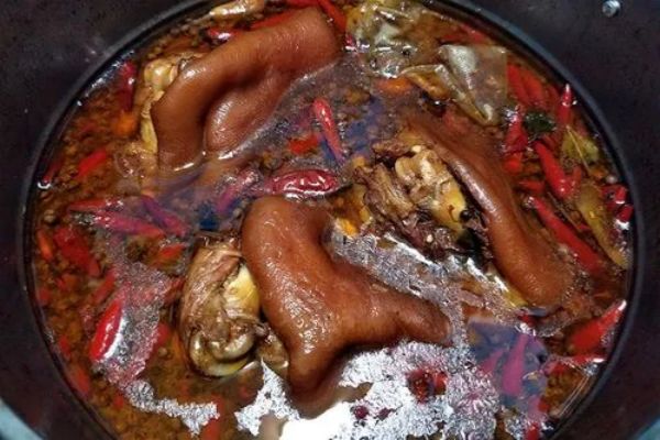2.高湯與傳統(tǒng)川式鹵水所用的熬制方法差不多,也是要用雞、鴨、豬棒子骨、雞骨架等原料加清水和姜蔥熬制,要加入大量豬肉皮,以使鹵水有一定的稠度。