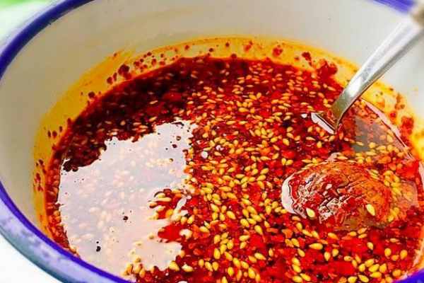配料:干辣椒200克、花椒 50克、花生仁60克、熟芝麻50克、鹽適量,調和油 120ml。
