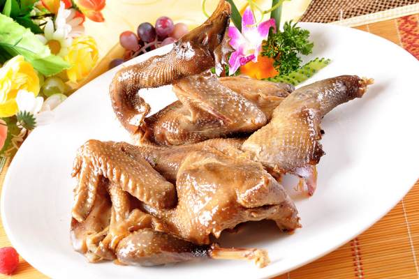 第一次調制鹵水時,要在此配方的基礎上增加北京二鍋頭800克。以后每次鹵的時候,可補充二鍋頭250克,蔥、大姜各150克。在鹵制雞的過程中,最好用布包將雞逐一扎好,鹵制結束后放涼,再去掉布包。