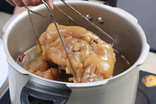 12、經過40分鐘的小火高壓燜煮,豬蹄已燉煮軟爛;