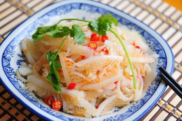 1、將牛百葉沖洗干凈,切片,放人沸水中余燙至熟,瀝水備用。