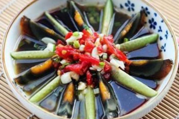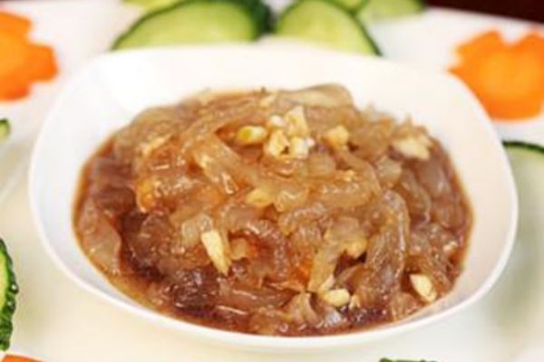 原料:海蜇皮300克、醋1勺、生抽1勺、蒜泥、芥末油1小勺