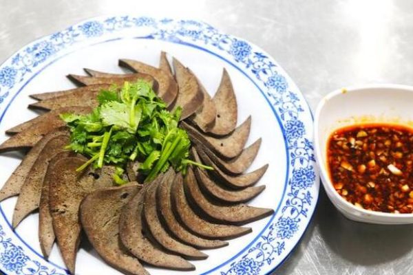 1、首先要把豬肝清洗干凈,用水龍頭對住豬肝上面的孔,灌滿水后倒出,反復(fù)沖洗兩遍,放入盆中備用