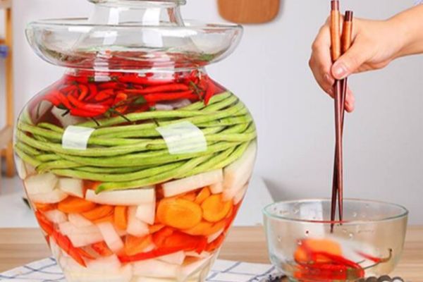 首先是容器的選擇,制作泡菜,傳統的配方一定是要求陶土壇,如果是制作跳水泡菜,玻璃壇子相對更為適合,便于清洗、內部的蔬菜物也看得清楚,關鍵是跳水泡菜要求不漏氣,這點玻璃相比陶土更為符合。