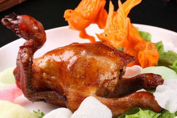 2、烤制時火不宜太大,否則雞皮顏色會太重,炸制時容易造成雞皮發黑。