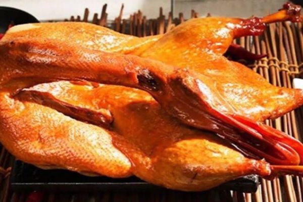 3 、鴨子是用鴨油(烤鴨時滴落的鴨油,當然剛開始可用色拉油,在高壓力鍋炸制時,油一般不會變黑,這油可反復用)炸制的,長時間放置,色澤會發生褐變,因此最好是當天售完。